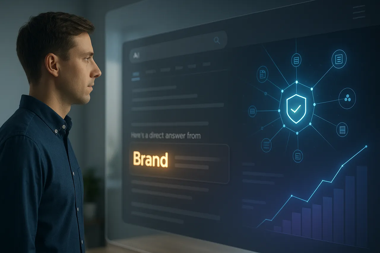 Ключевые метрики — это рост брендового трафика (запросы с названием вашей компании), динамика упоминаний бренда в сети (мониторинг с помощью специальных сервисов), рост прямого трафика и ассоциированных конверсий. Также важно отслеживать появление вашего сайта в качестве источника в AI-ответах.